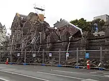 The buildings were substantially damaged in the February 2011 Christchurch earthquake.[7] The stone tower on Armagh Street, which acted as the buildings' entrance on their north side and which held the clock of the Victoria Clock Tower in the early years, collapsed.[8] Dr Ian Lochhead, Associate Professor of Art History at the University of Canterbury, said that the Stone Chamber was for many the single biggest heritage loss of the February earthquake. Lochhead, who was an advisor for the restoration of the buildings from 1981, called for the reconstruction of the Stone Chamber.[9] Detailed engineering assessments showed that the buildings received so much damage that significant portions would have to be rebuilt. A report was due to be given to Christchurch City Councillors in June 2013 outlining the options.[10]
