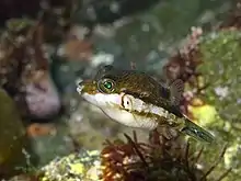 Canthigaster rivulata commonly known as the brown-lined puffer, or kitamakura (Japanese: キタマクラ) is a marine fish belonging to the family Tetradontidae.