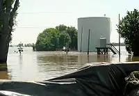 Periodic flooding of the downtown area happened again after World War II, but was largely ended by construction of a bigger and stronger levee in the 1960s.[5] Due to the new levee the Mississippi Flood of 1973, the Great Flood of 1993 and the June 2008 Midwest floods left Canton with far less damage than previous events and spared the town from the fates of other river towns. In June, 2013 a new "levee walk" and wetlands area was added to the Canton riverfront. The 2,000 foot trail provides both recreation and educational possibilities about the river and its habitat.[12] Tornadoes have also been unkind to Canton. Several smaller ones have touched down in or very near the town in its history, with most doing little damage. However, a large tornado struck Canton on May 10, 2003 damaging an estimated 100 structures, 40 of them severely, but leaving only four persons injured. The Culver-Stockton College fieldhouse, which just hours earlier had contained a large crowd for spring commencement, was virtually destroyed while the dome on Henderson Hall was also ripped away.[13] Henderson Hall is one of three locations in Canton listed on the National Register of Historic Places, the others being the Lock & Dam No 20 Historic District, and the Lincoln School building, a former school for African-American children in existence from 1880 to 1955.[5]