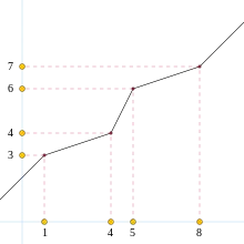 The same back-and-forth method used to prove Cantor's isomorphism theorem also proves that countable dense linear orders are highly symmetric. Their symmetries are called order automorphisms, and consist of order-preserving bijections from the whole linear order to itself. By the back-and-forth method, every countable dense linear order has order automorphisms that map any set of points to any other set of points. This can also be proven directly for the ordering on the rationals, by constructing a piecewise linear order automorphism with breakpoints at the given points. This equivalence of all -element sets of points is summarized by saying that the group of symmetries of a countable dense linear order is "highly homogeneous". However, there is no order automorphism that maps an ordered pair of points to its reverse, so these symmetries do not form a 2-transitive group.[2]