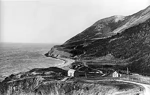 Some of the earliest grants of land in Cap-Rouge were made starting in 1826, with later grants following in 1864, 1867, 1868, and 1869. Other land concessions were awarded between 1873 and 1906.[1] The first school was opened in La Presqu'île around 1877 before later being located higher on the mountain in 1904. A Post Office was established June 1, 1899 at the home of Vieux Maurice Aucoin who become the first Postmaster.[3][1] Two lobster factories had already been established between 1900 and 1925. By 1936 the Cap-Rouge region included a sawmill located in La Rigoueche, a general store, a wharf, post office and school.[1]