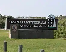 Cape Hatteras National Seashore was authorized by Congress on August 17, 1937.[3] The funds to purchase much of the land for Cape Hatteras National Seashore were donated by multi-millionaire philanthropist Paul Mellon.[4] On June 29, 1940, the name of the park was changed by the U.S. Congress to Cape Hatteras National Seashore Recreational Area.[5] The name change was done to accommodate hunting interests, which at that time was a unique allowance for a National Park Service managed entity. The park was officially established as the first national seashore on January 12, 1953, and dedicated on April 24, 1958, and is currently co-managed with two other Outer Banks parks, Wright Brothers National Memorial in Kill Devil Hills and Fort Raleigh National Historic Site on Roanoke Island. It is headquartered at Fort Raleigh.