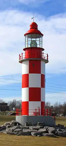 The Cape North Lighthouse is a cylindrical lighthouse tower with a red and white checkerboard pattern that stood at Money Point, near Cape North, Cape Breton from 1908 to 1980. While originally installed at Cape Race, Newfoundland, this tower is most commonly referred to as the Cape North Lighthouse. It now stands landlocked at the Canada Science and Technology Museum in Ottawa, Ontario, Canada.