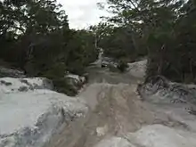 Bamaga Road now bypasses the overland telegraph line (OTL) track, which is often referred to as the tele track. The tele track was used for construction and maintenance of the OTL until it was superseded by first microwave relay towers and then by fibre optic cables, and is now used by four-wheel drive vehicle enthusiasts in the dry season. Many crossings, such as the bridge over the Wenlock near Moreton station, have been upgraded; however, many fords remain. The roads are unsealed and in places are difficult to traverse. They are considered suitable for four-wheel-drive vehicles only and also considered only suitable to be driven in the dry season.