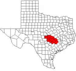 ![]() Map of Texas highlighting counties served by the Capital Area Council of Governments | |