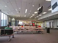 The current terminal building, constructed in 1959, is 161,500 square feet (15,004 m2) and has four floors. The lower two floors are passenger levels. The third floor houses the airport's administrative offices and the fourth floor contains the control tower. The terminal has nine gates, including six jetways. Located in the terminal is the Capital Market, Café Lan, on the first level of the terminal, is a full-service restaurant and grill serving breakfast, lunch, and dinner. Then in 2019, Capital Brewport opened. This restaurant offers many Lansing-made beers.[90] The Concierge Travel Center offers the ability to book airline tickets, cruises, hotels, tours, foreign currency exchange, and limousine rentals.[76] The Spartan Pub, on the second level, is a cocktail bar and coffee shop (serving Biggby Coffee brand) with a deli menu. A business center is located near gate 6, and it provides complimentary wireless (SSID "CRAA") Internet access.[91]