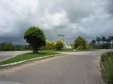 Belmopan is located in Cayo District at an altitude of 76 metres (249 feet) above sea level.[3] Belmopan was constructed just to the east of the Belize River, 80 km (50 mi) inland from the former capital, the port of Belize City, after that city's near destruction by Hurricane Hattie in 1961.[3][4] The government was moved to Belmopan in 1970.[5] Its National Assembly Building is designed to resemble a Pre-Columbian Maya temple.[6]
