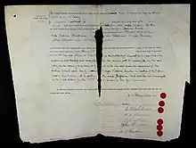 At the time of the Treaty of Waitangi in 1840 when New Zealand became a British colony, the most current legislation governing capital punishment in England, and henceforth New Zealand, was the Punishment of Offences Act (1837), which had abolished the death penalty for a number of statutory offences, including cattle stealing, and replaced it with penal transportation for life.[8] However, some capital crimes remained on the British law books, including murder, treason, espionage, arson in the royal dockyards, and piracy with violence.[9]