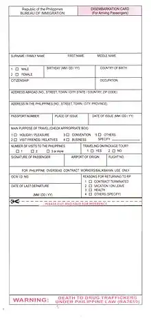 When the Philippines had the death penalty, male inmates condemned to death were held at New Bilibid Prison and female inmates condemned to death were held at Correctional Institution for Women (Mandaluyong).[33] The death chamber for inmates to be electrocuted was in Building 14, within the Maximum Security Compound of New Bilibid. The Bureau of Corrections (BuCor) Museum previously served as the lethal injection chamber.[34]