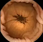 Capsule endoscopy is a medical procedure used to record internal images of the gastrointestinal tract for use in disease diagnosis. Newer developments are also able to take biopsies and release medication at specific locations of the entire gastrointestinal tract.[1] Unlike the more widely used endoscope, capsule endoscopy provides the ability to see the middle portion of the small intestine. It can be applied to the detection of various gastrointestinal cancers, digestive diseases, ulcers, unexplained bleedings, and general abdominal pains. After a patient swallows the capsule, it passes along the gastrointestinal tract, taking a number of images per second which are transmitted wirelessly to an array of receivers connected to a portable recording device carried by the patient. General advantages of capsule endoscopy over standard endoscopy include the minimally invasive procedure setup, ability to visualize more of the gastrointestinal tract, and lower cost of the procedure.[2]