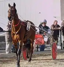 Over the next few months he travelled the eastern seaboard of Australia in pursuit of the Victorian, Queensland and NSW Derbies. He won all three comfortably. The Queensland Derby was notable[3] as he broke the all comers track record only to have it broken later in the night by Mr Feelgood in the Inter Dominion Grand Final. Towards the end of the season he won the three-year-old version of the NSW Breeders Challenge before heading to Victoria for the Australasian Breeders Crown.[4] This resulted in his only loss for the season when he took sixth. During the 2009 season he had 13 starts for 12 wins and $382,576 1:54.0MS. Captain Joy was awarded the 2009 Australian 3YO C&G Pacer of the Year, 2009 Australian 3YO Pacer of the Year, NSW 3YO Pacer of the Year and NSW Horse of the Year.