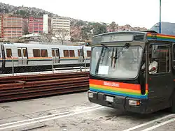 The Caracas Metrobus is a public transit system in Venezuela. [1]The bus network consists of 20 urban and 4 suburban routes which connect to the nearby cities of Los Teques, Guarenas, Guatire and San Antonio de Los Altos. [1]At present, it consists of a fleet of 220 buses.