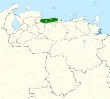 It lives in the undergrowth of humid forest, especially near edges, at altitudes of 300 to 1,200 metres (980 to 3,940 ft) in the Venezuelan Coastal Range.
