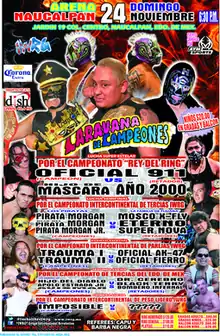 Professional wrestling has a long running tradition of holding shows that feature several championship matches, and at times actually promotes shows as an "all championship matches" show. The earliest documented "All-Championship" show is the EMLL Carnaval de Campeones ("Carnival of Champions") held on January 13, 1965.[2] In 2007 WWE held a pay-per-view called Vengeance: Night of Champions, making WWE Night of Champions a recurring theme.[3] Starting in 2008 the Mexican lucha libre promotion International Wrestling Revolution Group (IWRG) has held a regular major show labeled Caravana de Campeones, Spanish for "Caravan of Champions" using the same concept for a major annual show.[4] All Caravana de Campeones shows have been held in Arena Naucalpan, IWRG's home arena, the location of all of their major shows through the years. The November 2013 show was the seventh time IWRG has held a Caravana de Campeones show, having not held one in 2010 but held twice in both 2012 and 2013.[1][5][6][7]
