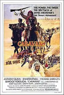 Caravans is a 1978 Iranian-American adventure drama film directed by James Fargo based on the 1963 novel by James A. Michener. Nancy Voyles Crawford wrote the screenplay. This film represents people of Afghanistan and their tradition in Qandahar, Badakhshan cities in that time and the Kochi people of Afghanistan. The film was shot in Afghanistan and Iran and starred Anthony Quinn, Jennifer O'Neill, and Michael Sarrazin.