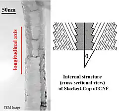 Carbon nanofibers (CNFs), vapor grown carbon fibers (VGCFs), or vapor grown carbon nanofibers (VGCNFs) are cylindrical nanostructures with graphene layers arranged as stacked cones, cups or plates. Carbon nanofibers with graphene layers wrapped into perfect cylinders are called carbon nanotubes.