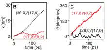 The interaction between the longer and shorter tubes generates an energy surface that confines the motion to specific tracks – translation and rotation. The degree of translational and rotational motion of the shorter tube are highly dependent on the chiralities of the two tubes as shown in Figure 2.3. Motion in the nanoactuator displayed a proclivity of the shorter tube to follow a path of minimum energy. This path could either have a roughly constant energy or have a series of barriers. In the former case, friction and vibrational motion of atoms can be neglected whereas a stepwise motion is expected in the latter scenario.[11]