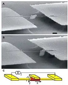 - Fennimore, A. M.; T.D. Yuzvinsky; Wei-Qiang Han; M. S. Fuhrer; J. Cumings; A. Zettl (2003). "Rotational actuators based on carbon nanotubes". Nature. 424 (6947): 408–410. Bibcode:2003Natur.424..408F. doi:10.1038/nature01823. PMID 12879064. S2CID 2200106.