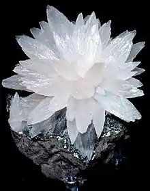 The discovery of dolomite rock, or dolostone, was first published in 1791[8] and has been found across the Earth's crust from various different time periods.[9] Because the rock is made of calcium, magnesium, and carbonate ions, the mineral crystalline structure can be visualized similar to calcite and magnesite.[10] Due to this composition, the dolomite mineral present in dolostone can be classified by varying degree of calcium inclusion, and occasionally iron, too.[9]