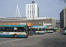 Redevelopment of the bus station began in 2008.[8] Demolition of the old terminal buildings (between stand A and Wood Street stands) started on 11 January 2008, with buses instead picking up at Castle Street and Westgate Street. On 6 May 2008, Stand A at the bus station closed for demolition of the terminal buildings.[9] As of 4 January 2009, some services reverted to using the bus station, whilst others remained split between the alternative terminal points.[10]