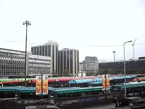 A multimillion-pound modernisation of Cardiff central bus station was announced in December 2010, with three options for public consultation.[11] In December 2011 the council announced that the existing bus station would close in early 2013 and the new bus station would be built on the site of the neighbouring Wood Street Car Park. The new bus station would open in mid-2014, and provide 19 bays and have direct access to Westgate Street and St Mary Street via Saunders Road.[12] A further announcement was made in January 2012, that negotiations were underway to sell off the existing bus station land to two major companies, who would build a 12-storey headquarters on the site. Part of the proceeds from the sale would be put towards redesign and redevelopment of Central Square, which would be renamed Capital Square.[13] These plans were put in doubt after the May 2012 council election.[14]