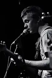 The sound of the album is a blend of indie rock, pop, and country elements. Reviewers also noted strains of heartland rock,[5] Americana, pop punk,[6][7] and emo music in its stylistic origins.[5] This led tastemakers to include Pinegrove among a wave of "emo revival" acts, and while Hall stopped short of labeling the group, he acknowledged Cardinal could be "lyrically confessional, emotionally direct, and emotive vocally, frequently." In response, Hall clarified the band's mission: "emo points inwards and it's our aim to point outwards."[8] Aside from the standard guitar, bass guitar, and drums, Cardinal incorporates pedal steel guitar and banjos as well.[5] Writer Collin Brennan, in his review for Consequence of Sound, said Cardinal "evokes the stars and the woods and the vast open spaces of America."[9] Reviewers frequently cited Wilco as a point of reference for the music on Cardinal,[6][9][7] though Hall narrowed down the band's lineage to My Morning Jacket and Bon Iver.[8] Lyrically, Hall was also inspired by the novelists Virginia Woolf and David Foster Wallace.[10]