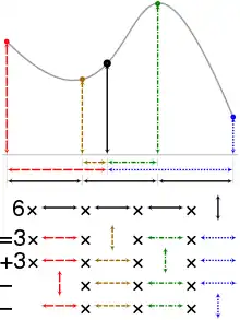 Geometric interpretation of Catmull–Rom cubic interpolation of the black point with uniformly spaced abscissae.[6]