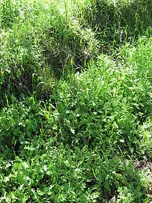 Mechanical methods can be effective but must be done before the plant sets seed. Additionally, the root must be severed at least 4 inches (10 cm) below the ground to prevent the plant from regenerating.[8] Mowing and slashing are not reliable as the plant is able to regrow and produce seed even at a height of 3 inches (7.6 cm).[5][10]