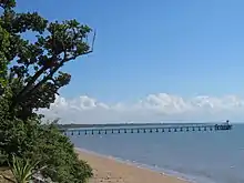 Cardwell was the first port settlement on the Queensland coast north of Port Denison (Bowen). The first party of non-indigenous people to settle at Rockingham Bay arrived in January 1864 and was led by George Elphinstone Dalrymple.[13] They were 20 in number including James Morrill, William Alcock Tully, botanist John Dallachy, Arthur Jervoise Scott, Lieut. Marlow of the Native Police and his troopers Norman, Archy and Warbragen. Dalrymple also brought his "black boy" servant, an Aboriginal man from Stradbroke Island that he called "Cockey". They came from Bowen on the small schooner Policeman which was under the command of ex-Native Police officer Captain Walter Powell, with the 3 ton cutter Heather Bell in tow.[14]