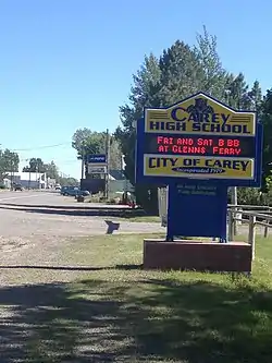 Carey is a city in Blaine County, Idaho, United States. The population was 604 at the 2010 census. Carey is primarily an agricultural city and is the location of the Blaine County Fairgrounds. Nearby recreational destinations include the Craters of the Moon National Monument, Carey Lake, Silver Creek and the Little Wood River. Further west is the Big Wood River Valley, leading to the Sun Valley resort. In recent years, the city of Carey has experienced significant growth.