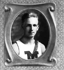 ![]() Carl Johnson, captain of the University of Michigan track team, 1921 | |||||||||||