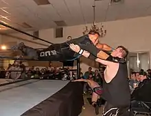 Ouellet also wrestled for All-Star promotions in Britain alongside his friends and tag team partners with Rene Dupree. Ouellet has mainly been working a lot of Tag Team matches with Rene Dupree, Robbie Dynamite, Hannibal and Mikey Whiplash. He defeated Sylvain Grenier in an RDS battle on June 21, 2008, in Hawkesbury, Ontario Canada with Marc Blondin serving as the special referee. In July 2008, Ouellet lost to Charlie Haas on Monday Night Raw in a dark match.[20] In an interview with Slam! Sports on August 6, 2008, Ouellet declared that he would like another stint with the WWE.[10] He then defeated long-time rival Kevin Nash on May 30, 2009, at the International Wrestling Syndicate's 10th Anniversary show by making him submit via an armbar.[21]
