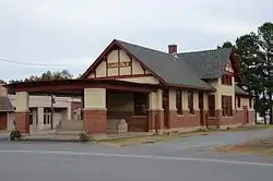 The Carlisle Rock Island Depot is a historic railroad station at Main and Court Streets in Carlisle, Arkansas. It is a 1+1⁄2-story masonry and frame structure, finished in brick with half-timbered stucco. A passenger station, it was organized with a central service area for ticketing and telegrapher's bay, with waiting rooms on either side, one for whites, and one for African-Americans. The station was built about 1920 by the Rock Island Railroad; it is a prominent local example of Tudor Revival style, and is historically significant for its role in the growth of the city of Carlisle.[2]