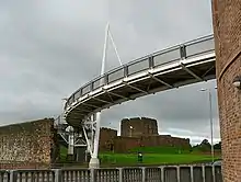The walls fell into disrepair at various times. A 1684 survey reported that The Citadel had been almost destroyed by the Scots.[3] By the end of the eighteenth-century, the need for easier access for traffic and the need for better ventilation of the crowded city led to demands for the walls' demolition and an Act of Parliament was passed in 1807.[4] The stone was used to redevelop The Citadel as a court building and in the construction of a new Eden Bridge to the north of the city. Both these projects involved Thomas Telford and Robert Smirke.[5][6]