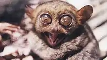 The Philippine tarsier (Carlito syrichta), known locally as mawumag in Cebuano and other Visayan languages, and magô in Waray, is a species of tarsier endemic to the Philippines. It is found in the southeastern part of the archipelago, particularly on the islands of Bohol, Samar and Leyte. It is a member of the approximately 45-million-year-old family Tarsiidae, whose name is derived from its elongated "tarsus" or ankle bone. Formerly a member of the genus Tarsius, it is now listed as the only member of the genus Carlito, a new genus named after the conservationist Carlito Pizarras.