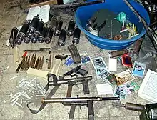 Carlo (Arabic: كارلو) (also referred to as Carl Gustav)[4] is an improvised submachine gun manufactured by small workshops in the Palestinian territories. The design was inspired by the Swedish Carl Gustav m/45 and its Egyptian Port Said variant, however the similarity is often only passing.[1] The Carlo's homemade nature makes it affordable on the black market, where it is purchased not only by Palestinians targeting Israelis[5] but also by Arab-Israeli gangs.[4] The Carlo is cheap and requires little skill or equipment to manufacture, but it is inaccurate and prone to jamming and misfire.[1] The weapon is named after the Carl Gustaf m/45.[6]