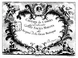 In April 1733 Arrigoni performed his own concerto for the lute and then became associated with the Opera of the Nobility, set up in opposition to George Frideric Handel. Performances there of his opera Fernando earned him inclusion in John Arbuthnot’s satirical pamphlet, Harmony in an Uproar (dated 1733). This takes the form of a pastiche of Arrigoni's opera under the name of "The King of Arragon”.[3] Arrigoni was noted not only as a performer on lute and harpsichord, but also as a singer, and was eventually recruited to take part in Handel’s productions. During 1736 he is recorded as playing the lute at the premiere of Handel’s choral work Alexander’s Feast and in his concerto for lute (opus 4.6), as well as performing as tenor soloist in the cantata Cecilia, volgi un sguardo.[4]