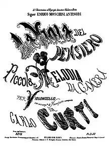 Carlo Curti (4 November 1807 - 29 December 1872) was a Bolognese Italian cellist, educator and composer.[1][2][3] He studied violin under Rolla (possibly Antonio Rolla), and then the cello under Parisini.[3] He was made professor at the Liceo di Musica (the Royal School of Music in Parma) as a young man and in May 1838 became First Cello in the Teatro Regio in Parma when it was led by Nicola De Giovanni.[1][2][3] He retired to Bologna, his home town and birthplace, in 1871 or 1872 and died from a cardiac condition caused by pneumonia soon after.[1][3] The 17 May 1838 issue of the music journal Teatri Art E Letteratura pointed to him as him an example of Italian musical excellence, a gift to the world.[2]
