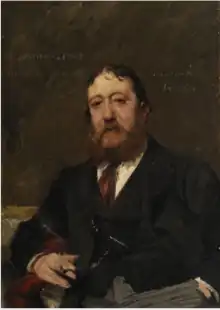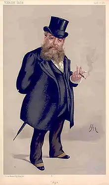 Carlo Pellegrini (25 March 1839 – 22 January 1889), who did much of his work under the pseudonym of Ape, was an Italian artist who served from 1869 to 1889 as a caricaturist for Vanity Fair magazine, a leading journal of London society. He was born in Capua, then in the Kingdom of the Two Sicilies. His father came from an ancient land-owning family, while his mother was allegedly descended from the Medici. His work for the magazine made his reputation and he became its most influential artist.