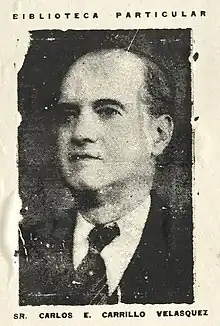 Carlos E. Carrillo Velasquez (born 1890) was a Peruvian educator, prison administrator, and bibliophile.[1] Carrillo Velasquez amassed one of the largest, most comprehensive book collections on the history of late 19th and early 20th century Peruvian publishing.[2]