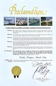 - Official Proclamation issued by the Mayor of Miami-Dade County and the Board of County Commissioners declaring Carlos Enrique Prado Day, in honor of his numerous public art projects, 2022.