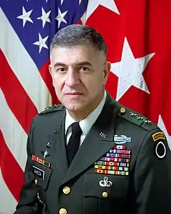 Carmen James Cavezza (born November 15, 1937) is a retired United States Army lieutenant general.[1] He is a former commander of the I Corps at Fort Lewis, Washington, Commander at Fort Benning, Georgia, Commander at Fort Ord, California, Assistant Commander, 82nd Airborne Division and Commanding General, United States Army Infantry Center and School at Fort Benning, Georgia. Cavezza retired in 1994.[2]