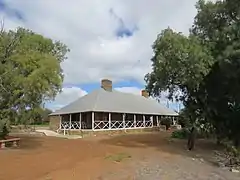 The society also cares for the Macpherson Homestead, located about one kilometre east of the Carnamah townsite.[18][19] The stone homestead was built in the late 1860s and following deterioration was restored with locally raised funds and grants from Lotterywest.[18] The homestead is permanently on the State Register of Heritage Places. The Heritage Council of Western Australia noted that "early settlers played an important and successful role in the development and growth of the Carnamah district" and that "the place has a particular structural interest, with its high walls and steeply pitched roof and bush rafters".[20]