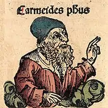 Carneades (/kɑːrˈniːədiːz/; Greek: Καρνεάδης, Karneadēs, "of Carnea"; 214/3–129/8 BC[2]) was a Greek philosopher[3] and perhaps the most prominent head of the Skeptical Academy in ancient Greece.[3] He was born in Cyrene.[4] By the year 159 BC, he had begun to attack many previous dogmatic doctrines, especially Stoicism and even the Epicureans[5] whom previous skeptics had spared. As scholarch (leader) of the Academy, he was one of three philosophers sent to Rome in 155 BC where his lectures on the uncertainty of justice caused consternation among leading politicians.[6][7][8] He left no writings.[9] Many of his opinions are known only via his successor Clitomachus. [10] He seems to have doubted the ability not just of the senses but of reason too in acquiring truth. His skepticism was, however, moderated by the belief that we can, nevertheless, ascertain probabilities (not in the sense of statistical probability, but in the sense of persuasiveness)[11] of truth, to enable us to act.[12]