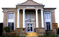 The main feature of the Classical Revival structure is its two-story portico with four ionic columns. The only structural addition to the library since its construction was a fireproof archives room built in 1964.[2]