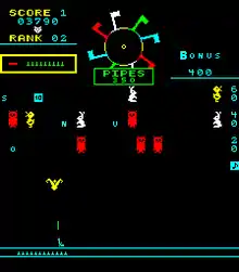Carnival is a fixed shooter developed by Gremlin and released by Sega in arcades in 1980.[5] It was one of the first video games with a bonus round.[6]