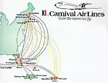 - "Carnival Air Lines route map". departedflights.com. Retrieved 29 July 2019.