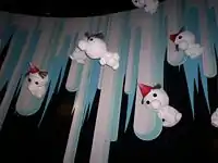 - This scene is of an icy world filled with igloos and Inuit and many penguin-sized, snowman-like creatures. After this scene, riders pass through a tunnel where many of these creatures stare down through holes in the ceiling.