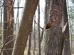 These birds usually sleep in cavities, though they may sleep in branches. Different members of a flock will sleep in the same cavity from night to night. While females usually sleep in the nest cavity, males will normally sleep on a nearby branch.[4]