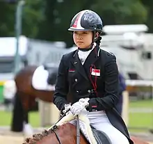 Caroline Rosanna Pei Jia Chew (born 18 April 1992[1]) is a Singaporean equestrian athlete and solicitor. She competed at the 2018 World Equestrian Games and the 2014 Asian Games in dressage, and at the 2010 Youth Olympic Games in show jumping. She won several medals during the Southeast Asian Games (from 2013 through 2017), and competed at the 2020 Summer Olympics.[2]